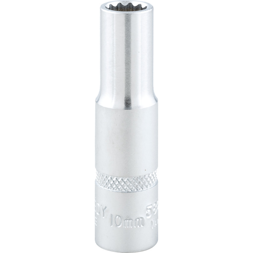 12 szögű kivitel amely nagyobb nyomatékot eredményez. Krómozott, polírozott, króm-vanádium acél. Belül letört élekkel a csavarfejekre való gyors ráfogás érdekében. Belső négyszög minden oldala horonnyal.