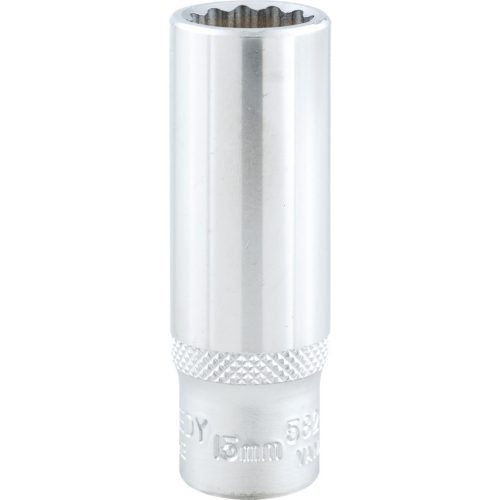 12 szögű kivitel amely nagyobb nyomatékot eredményez. Krómozott, polírozott, króm-vanádium acél. Belül letört élekkel a csavarfejekre való gyors ráfogás érdekében. Belső négyszög minden oldala horonnyal.