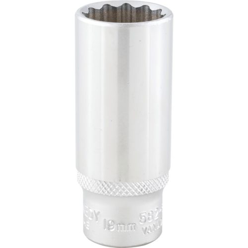 12 szögű kivitel amely nagyobb nyomatékot eredményez. Krómozott, polírozott, króm-vanádium acél. Belül letört élekkel a csavarfejekre való gyors ráfogás érdekében. Belső négyszög minden oldala horonnyal.