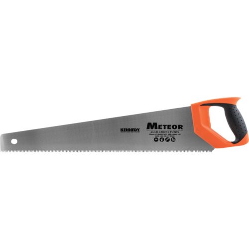 550mm (22") kézifűrész, kiváló minőségű edzett és lágyított acéllap speciálisan edzett fogazattal. Két anyagból készült, ergonomikus nyél ujjvezezetőkkel a nagyobb kényelemért és pontosságért. Oda-vissza vág. Faanyagok,furnérlemez, parketta, faforgácslemez, PVC és laminált lapok.