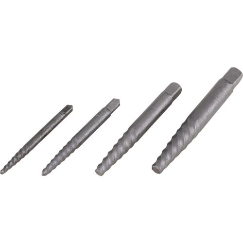 Egyszerű, olcsó eszköz a beletört csavarok, kötőelemek eltávolítására az alkatrész csavarmenetének sérülése nélkül.Törtcsavar kihajtó készletek4 darabos méretek: No. 2, 3, 4 és 56 darabos méretek: No. 2, 3, 4, 5 és 6.