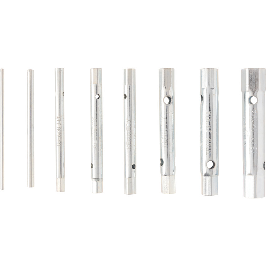 Jó minőségű, horganyzott acélcsőből gyártva. Hajtószárral szállítva.Készletek összetétele:KEN-581-1450K - 7 darabos metrikus. 6 x 7, 8 x 9, 10 x 11, 12 x 13, 14 x 15, 16 x 17 and 18 x 19mm.KEN-581-1950K - 6 darabos collos. 1/4” x 5/16”, 5/16” x 3/8”, 3/8” x 7/16”, 1/2” x 9/16”, 9/16” x 5/8” és 11/16” x 3/4”.KEN-581-2350K - 6 darabos BA. 0 x 1, 2 x 3, 4 x 5, 6 x 7, 8 x 9, 10BA.