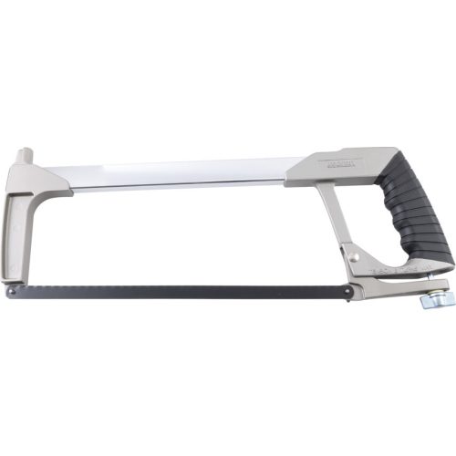 Acélkeret nagy igénybevételre első markolattal és rovátkolt gumi bevonatú őDő markolattal. Lapfeszítés feszítőkarral és szárnyas anyával. A fűrészlap a kerethez képest 45°-ban dönthető, lehetővé téve a síkban történő vágást. Edzett, 300 mm-es (12") HSS lappal.