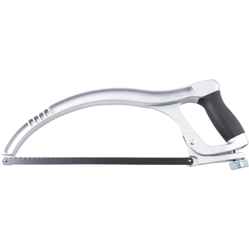Erős és könnyű alumínium konstrukció szilárd őIő profil kerettel. Fröccsöntött, puha fogású markolat, szárnyas anya lapfeszítés, 0° és 45° lapbeállítás. Fűrészlappal együtt.