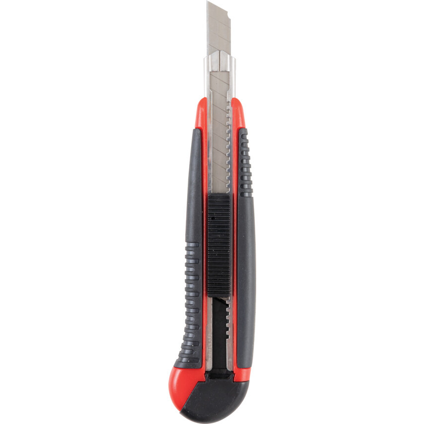 ABS műanyag ház gumi bevonattal a jobb fogás érdekében, acél pengesín, mely megakadályozza a penge megcsúszását vagy a ház elhasadását. Törhető késpenge. Egyedi rugóterhelésű automatikus pengecsere.